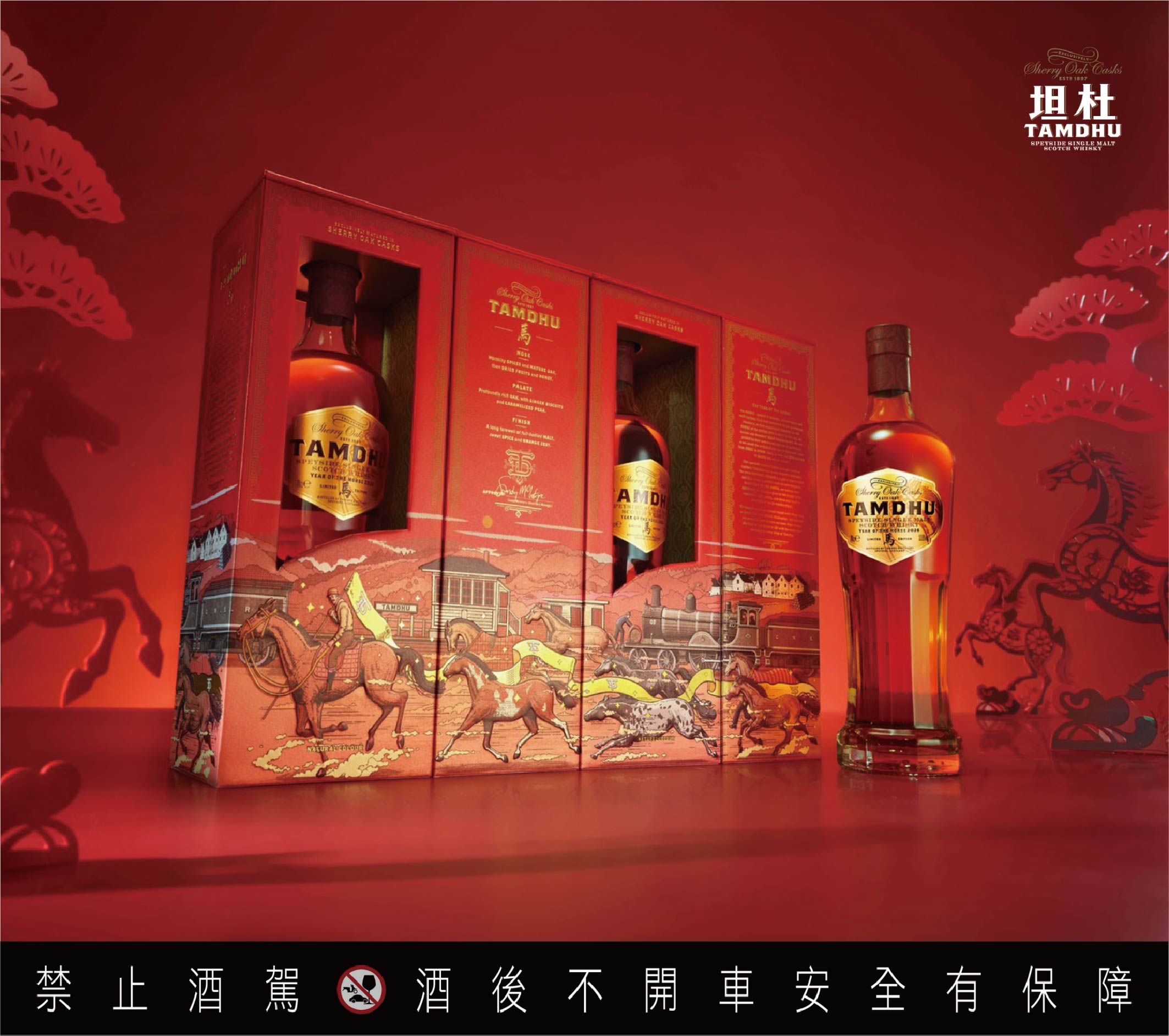 金馬奔騰禮盒,象徵吉祥財運,於農曆馬年春節推出,更具收藏與送禮價值。(坦杜提供)藝術與威士忌的碰撞 聯名酒款成關鍵戰場